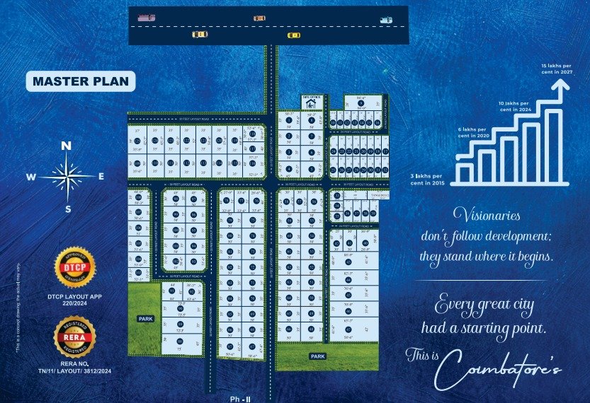 Kovai South IT Corridor is an exclusive DTCP-approved plotted development located in the fast-growing southern part of Coimbatore, along the Othakkalmandapam to Malumichampatti stretch. Nestled amidst a booming IT hub and surrounded by educational institutions, industrial parks, and residential neighborhoods, this project offers a perfect blend of investment potential and serene living. With seamless connectivity to major roadways and key city landmarks, it’s the ideal destination for those looking to build their dream home or secure future-ready land assets.